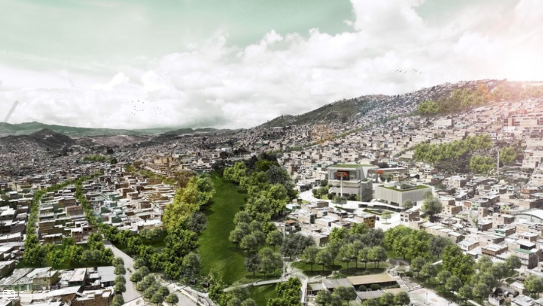 Propuesta: Busca generar un hito urbano de integración comunitaria y social en uno se los sectores más pobres de Bogotá en su periferia, aprovechando la importancia del futuro cable aéreo –TransMiCable- que se conectará con dicho proyecto en una estación.