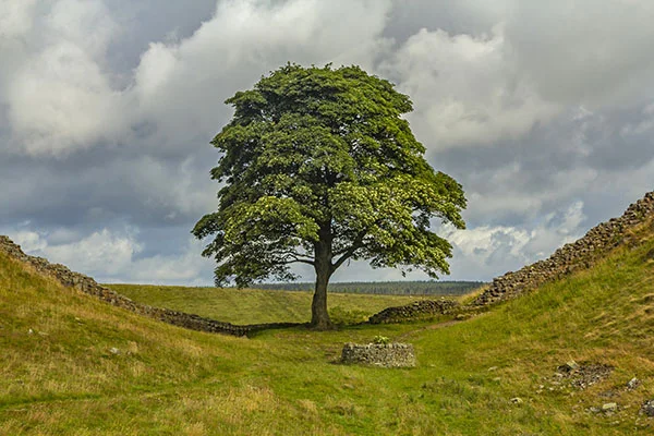 El árbol de Sycamore Gap, aunque relativamente joven con 150 años de antigüedad, se erigía como un emblema del paisaje inglés. Situado en un valle entre colinas donde el Muro de Adriano, un sitio declarado Patrimonio de la Humanidad por la UNESCO, serpentea a través de los Pennines, el árbol era un punto de referencia para excursionistas y un escenario inmortalizado en películas como Robin Hood: Prince of Thieves.