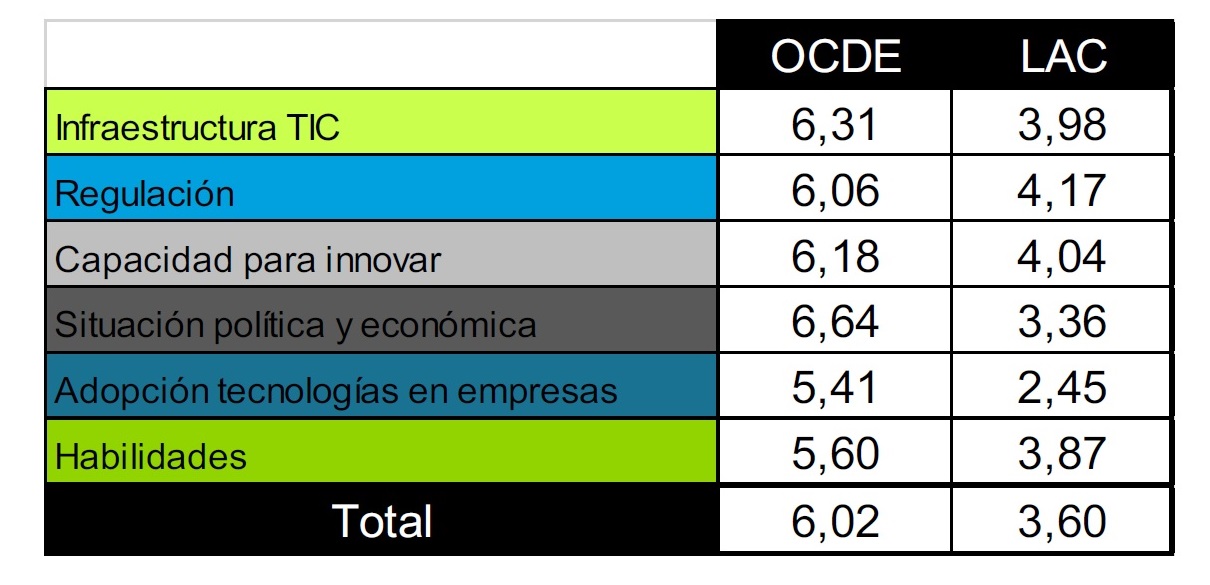 Latinoamérica y el Caribe se sitúan a 2,42 puntos de distancia de los países de la Organización para la Cooperación y el Desarrollo Económicos (OCDE) respecto a la implementación de la tecnología IoT (Internet de las Cosas)